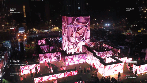 沉浸式迷宮光影秀光鑰未來(lái)key of the maze是由近3000片LED搭建高低錯(cuò)落的結(jié)構(gòu),圍成一個(gè)迷宮的形式,搭配數(shù)字燈塔,打造的迷宮光影秀。這個(gè)創(chuàng)意裝置整體節(jié)目?jī)?nèi)容主要分成展演時(shí)段與非展演時(shí)段。
