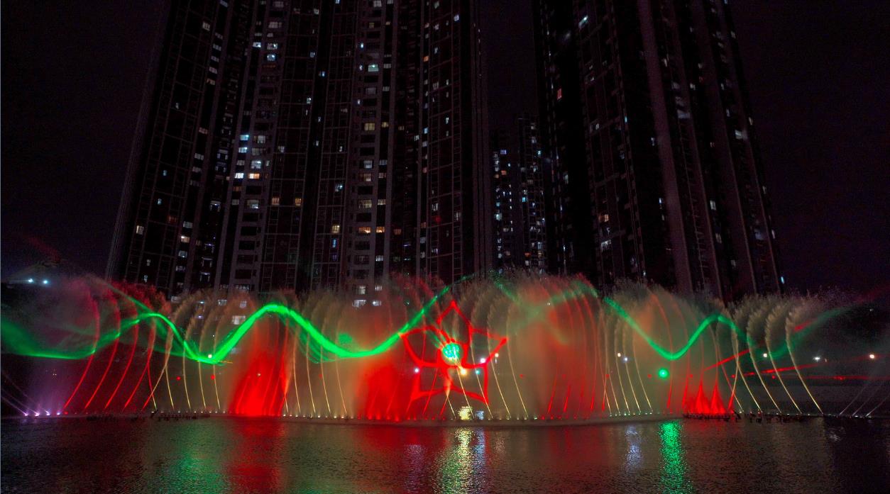 幸福之光人民大舞臺(tái)之“幸福之光·紅色傳承”慶祝建黨100周年,我司以水舞秀以光為筆,以水作袖,以文化為魂,分為頌芳華、正輝煌、向未來三個(gè)篇章,時(shí)長9分鐘,生動(dòng)的詮釋了偉大祖國的過去、現(xiàn)在和未來。水舞秀噴泉設(shè)計(jì)共有7種水型和1個(gè)高噴造型,寓意中國共產(chǎn)黨的生日7月1日。7種水型設(shè)計(jì)分別寓意為:勇立潮頭、一往無前、凝心聚力、生生不息、展翅飛翔、龍飛鳳舞、和諧美滿,生動(dòng)體現(xiàn)了文沖百姓“文武兼?zhèn)洹⒅怯码p全、沖鋒陷陣、爭創(chuàng)一流”的奮斗精神和活力風(fēng)采。