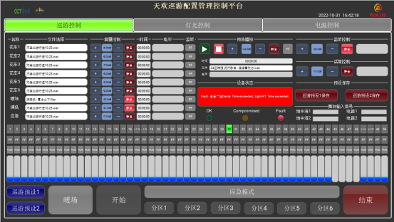 通過巡游管理軟件可以制定花車路線,更改花車順序、編組、音樂內(nèi)容、燈光效果、場景預設(shè)和切換,迎合園區(qū)動態(tài)表演的需求。