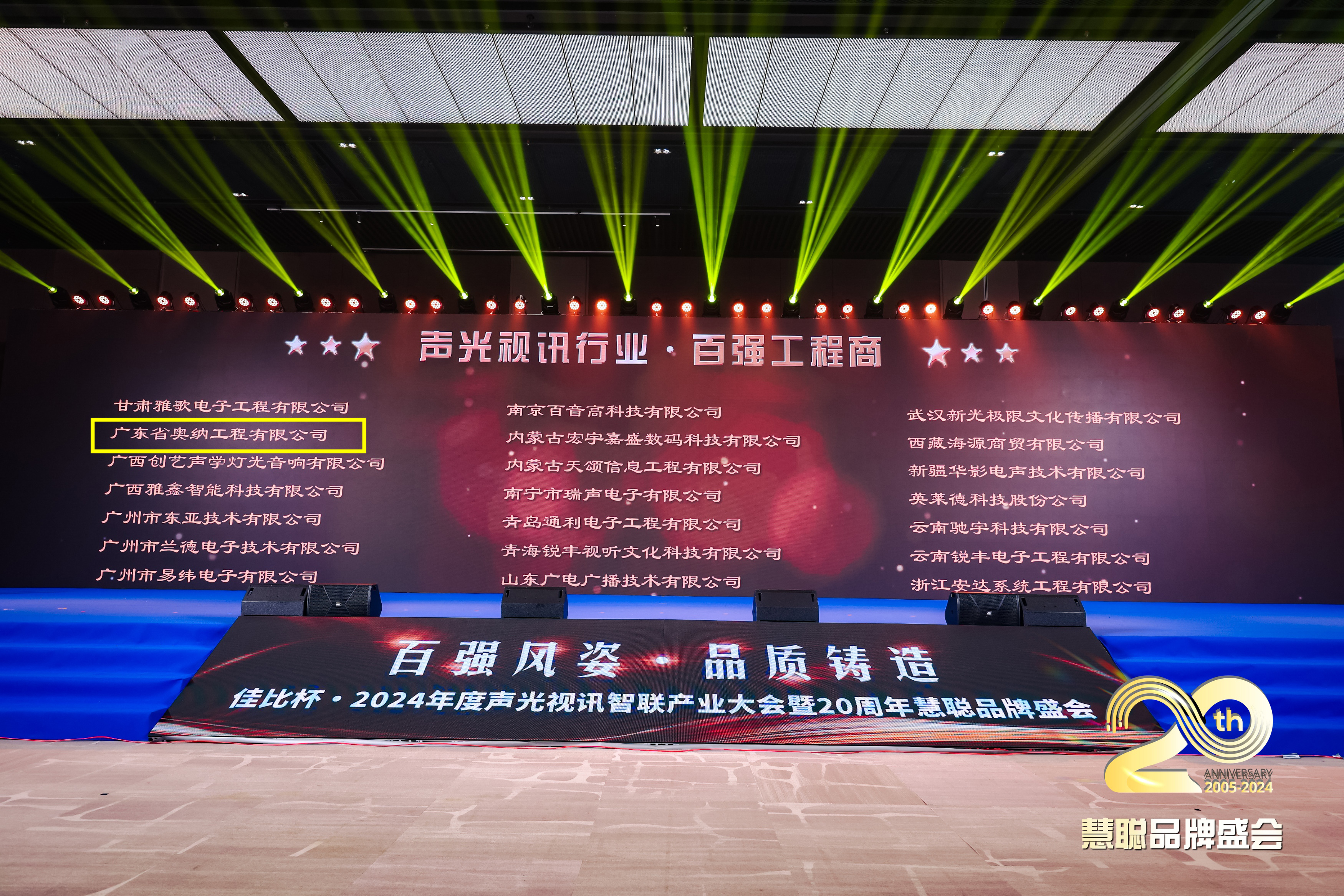 本次評選經(jīng)過2個多月全方位考核,1600余家上下游企業(yè)參評,13個品牌獎項覆蓋行業(yè)各個領(lǐng)域370萬+網(wǎng)絡(luò)投票,130萬+視頻企業(yè)/品牌短視頻關(guān)注度,1000名工程商、演出商實名投票,8位專家老師權(quán)威評審,1萬+觀眾在線共同見證下。廣東省奧納工程有限公司憑借過硬的綜合實力和深厚的行業(yè)品牌影響力,連續(xù)五年獲得“全國百強(qiáng)工程商,省級十強(qiáng)工程商、”榮譽(yù)。這不僅是對奧納工程過去辛苦付出的肯定,更是對未來發(fā)展的激勵。