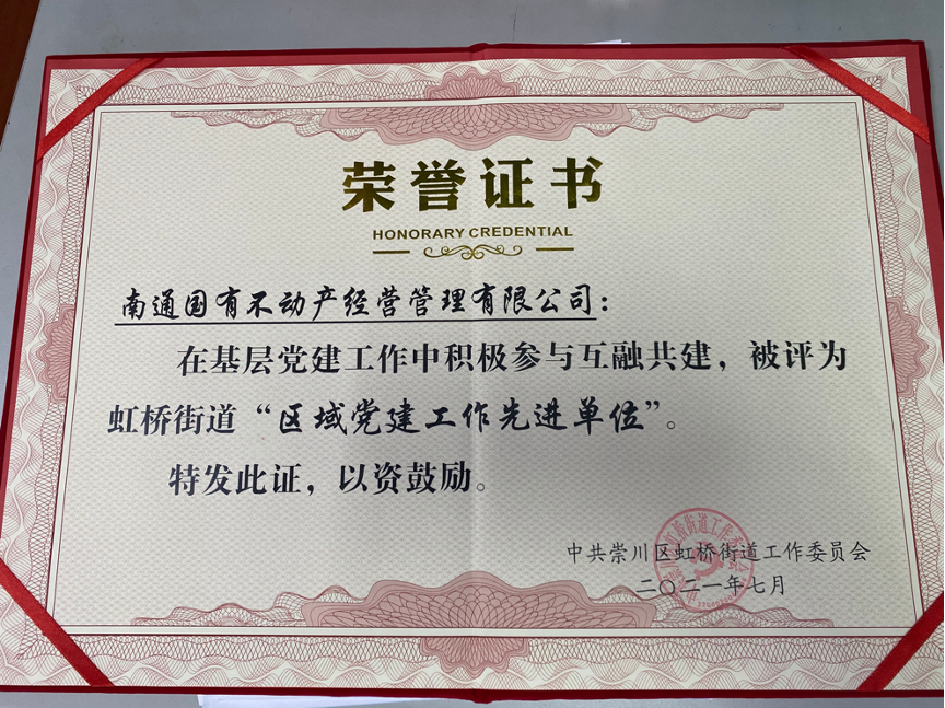 近年來,不動(dòng)產(chǎn)公司充分發(fā)揚(yáng)黨員同志的先鋒模范作用,積極推進(jìn)黨建工作,受到轄區(qū)街道黨工委和居民朋友們的好評(píng)。72日下午,虹橋街道“慶祝建黨100周年”主題活動(dòng)在南通開放大學(xué)中遠(yuǎn)路校區(qū)15樓會(huì)議室召開,我司作為街道優(yōu)秀區(qū)域黨建單位受到中共崇川區(qū)虹橋街道工作委員會(huì)表彰,被授予“區(qū)域黨建工作先進(jìn)單位”榮譽(yù)稱號(hào)。