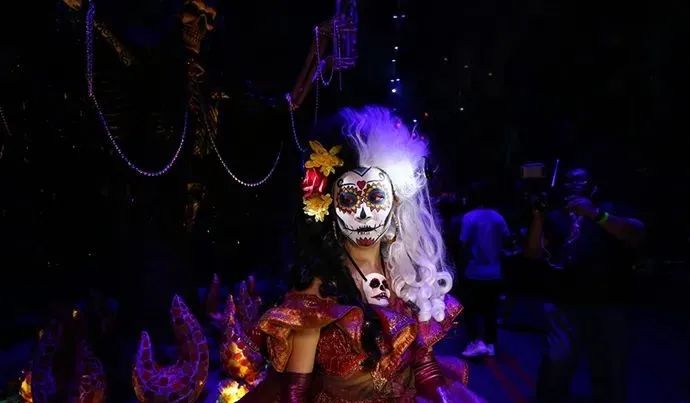 2017年新加坡環(huán)球影城萬圣節(jié)期間,首度打造了一場向墨西哥亡靈節(jié)致敬的死神降世祭典大巡游。1600加侖迷霧打造恐怖氛圍,330種燈光設(shè)置營造恐怖情緒,415發(fā)煙火每晚齊放,4米玩偶首度亮相,49個恐怖角色參與巡游演藝,展現(xiàn)了一場夜色迷離的圣誕驚魂夜。