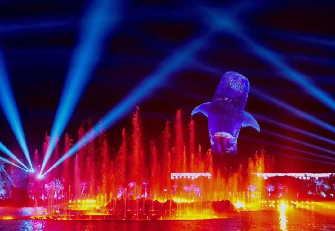 大型煙花表演,融入150架無人機演出、絢麗的激光與宏大的爆破場景、高難度的水上飛人演出、特技摩托艇與“鯨鯊”飛馳,共同組成了一場激情澎湃的《海洋保衛(wèi)戰(zhàn)》。視覺效果堪比好萊塢實景大片,為游客締造了視聽沖擊力十足的感官享受。