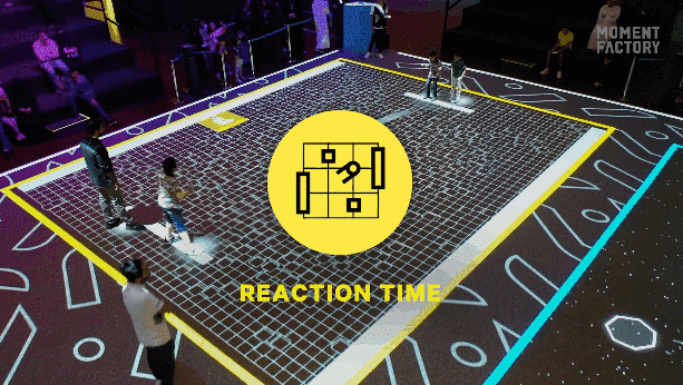 Moment Factory團(tuán)隊(duì)的《PLAY² 》,游戲變成了“體育競(jìng)技場(chǎng)”。2019Tanween專題討論會(huì)上,創(chuàng)新型的現(xiàn)場(chǎng)游戲PLAY²誕生,這是一個(gè)多媒體互動(dòng)游戲,可以在大屏幕上實(shí)時(shí)記錄玩家運(yùn)動(dòng)分?jǐn)?shù),將游戲從屏幕上帶到現(xiàn)實(shí)世界。