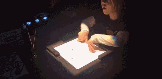 當你拼接的不同材料,投影到屏幕上,漸漸變得意識化,看著如流水變化的色彩,壓力自然得以釋放。
