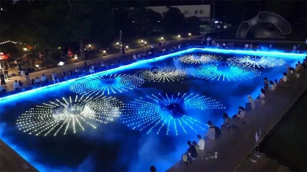 基本的、不斷變化的霧氣和煙花的數(shù)字化燈光一起產(chǎn)生了一種眼睛不會(huì)厭倦的景象。這件作品融入夏日的傍晚,為參觀者提供了一種在炎熱中恢復(fù)身心的體驗(yàn)。