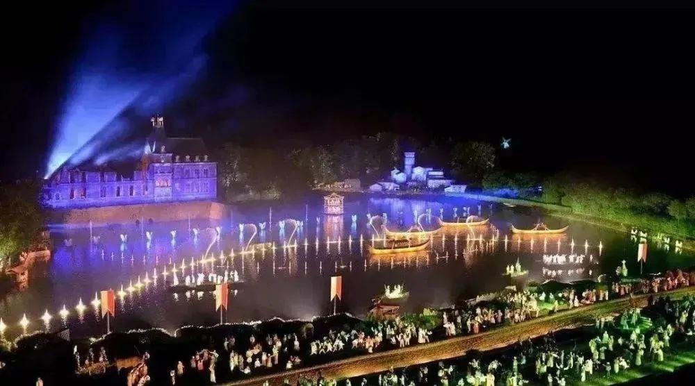 其中,La Cinéscénie是全球規(guī)模最大的夜間表演。整場(chǎng)表演長(zhǎng)達(dá)1小時(shí)40分鐘,采用真人表演、煙花秀、燈光秀、3D投影、無(wú)人機(jī)等相結(jié)合的形式,將表演從海陸空多角度立體呈現(xiàn)。在場(chǎng)景感營(yíng)造方面,主題樂(lè)園貫徹“游客將忘記二十一世紀(jì)”這一核心設(shè)計(jì)理念,在原有歷史建筑的基礎(chǔ)上打造出多個(gè)具有不同時(shí)代氛圍的村落,建筑、餐廳與酒店凸顯文化情調(diào)。