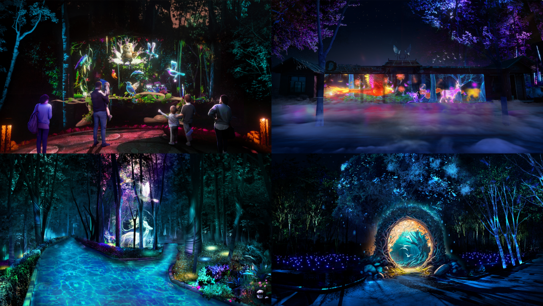 項(xiàng)目通過全新的數(shù)字新媒體與交互藝術(shù)裝置技術(shù),融入北戴河·鴿子窩公園的鳥主題及文化元素;結(jié)合光影、特效、交互及聲光電影音等多種手段設(shè)計(jì),在花園之中營造光影變幻的神奇動物夜。