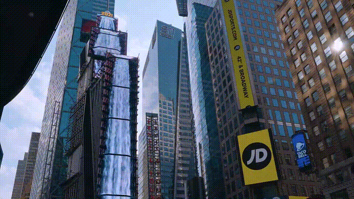 公共媒體藝術(shù)作品《Waterfall-NYC》在前不久于紐約時代廣場One Times Square外立面大屏幕上展出。